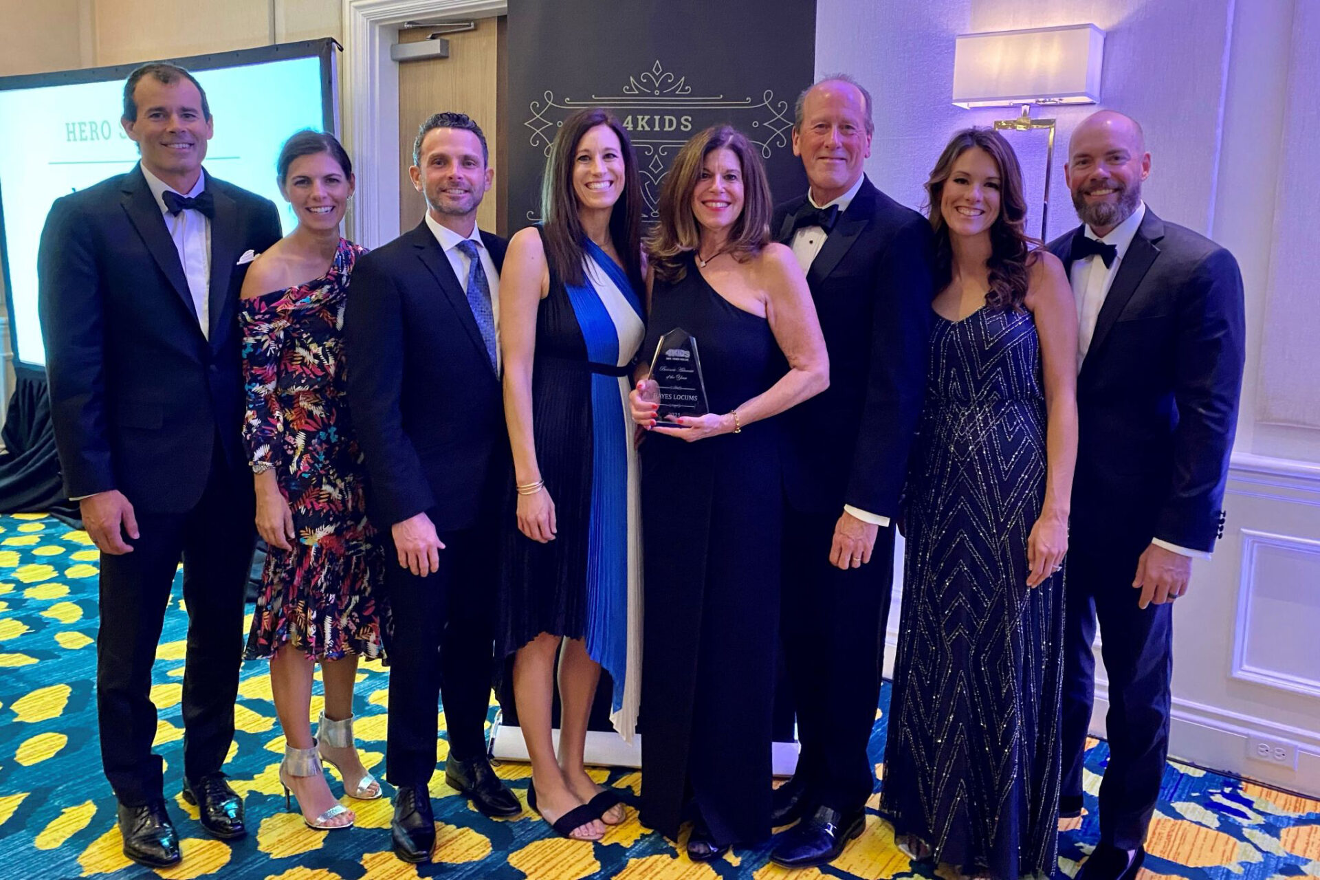At 4KIDS’ annual Honors Night awards dinner, Hayes Locums was awarded business advocate of the year for 2021. Hayes Locums offers to match every donation that an employee gives to 4KIDS up to $2,500, and we participate in a number of 4KIDS events throughout each year as part of our Hayes Helps partnership.