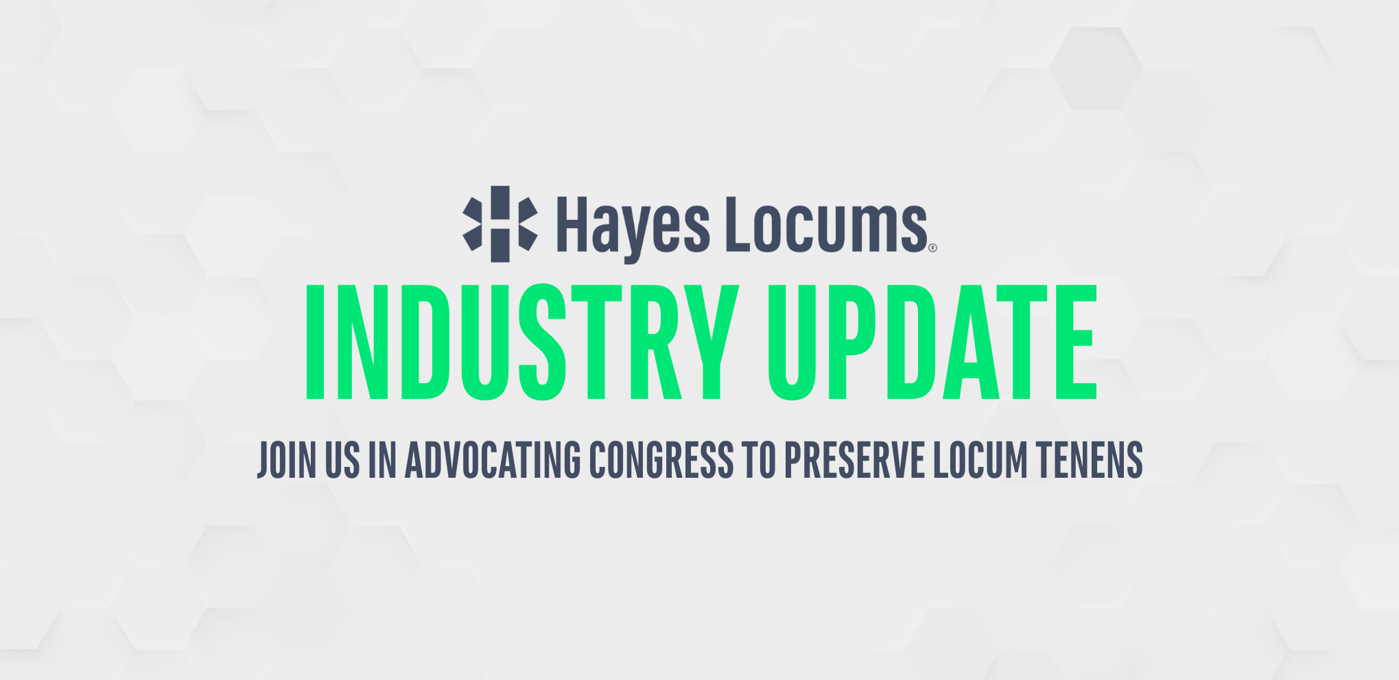 NALTO® is advocating that Congress codify physicians, surgeons, and advanced practitioners as independent contractors, to protect their important work and preserve the future of locum tenens. We anticipate legislation will be introduced this Congress to provide more certainty to locums providers, and ensure the continued availability of these doctors and advanced practitioners to hospitals and healthcare facilities. We urge you to join Hayes Locums and NALTO® in advocating for this legislation.