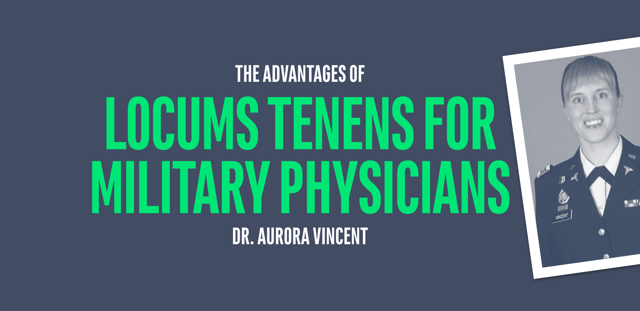 We spoke to one such physician ––Dr. Aurora Vincent, a head and neck surgeon (ENT) who serves in the U.S. Army––to learn more about how military medicine can differ from civilian medicine, and some of the unexpected advantages locums can offer to military physicians.